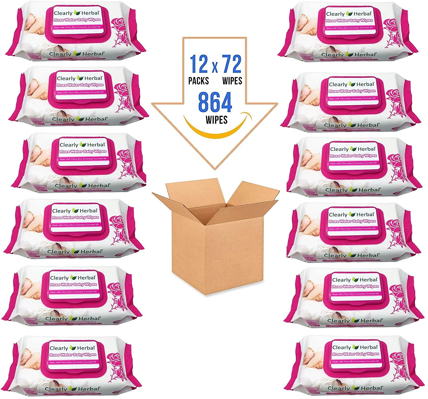 Clearly Herbal All Natural Rose Water Baby Wipes Case Of 12 Soft Packs In 2021 Baby Wipes Natural Rose Water Herbalism